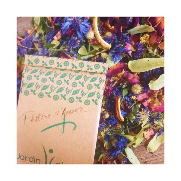 Je te donne ceux que j’ai piochés, amassés dans mon panier, séchés aux courants d’air, mélangés dans ton sachet… Fais-en un Philtre d’Amour…